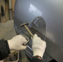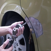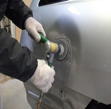 特殊な工具を溶接して、へこんだ箇所を